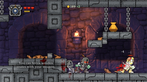 4、来到第4个房间,此房间内怪物分布较为分散,加上地形因素,需要来回跑动着战斗。在必要情况下,可击打黄色蘑菇,它能减慢时间流动。至于武器,可根据自身情况选用,使用锤子的话,战斗应该也会比较轻松。