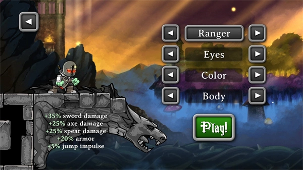 2、正式开始前,玩家需挑选自己的职业,选好职业后点击“play”开启闯关。