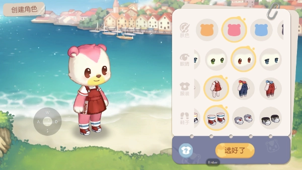2、着手创建角色,能够为小可爱挑选自己心仪的肤色、眼睛、衣服还有鞋子。