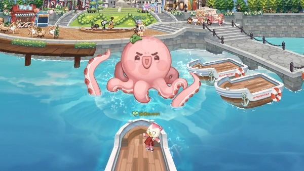 5、当你初次踏入奥比岛时,会有一只章鱼怪兽前来攻击你的小船。