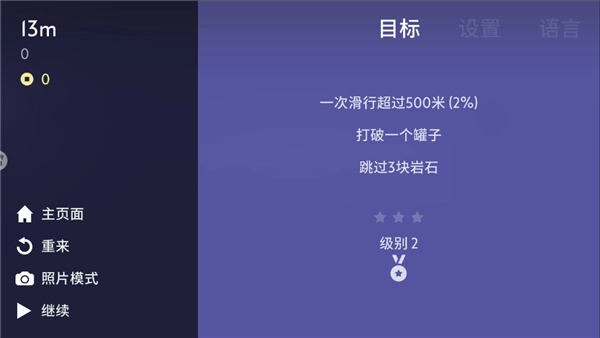 1. 开启雪地滑翔机,进入场景后点击设置,查看当前级别所对应的目标。
