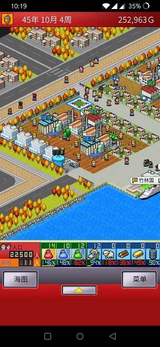 1、进入的首个界面,展示的是整体建筑布局。左右两侧各有一个建筑区域,下方港口位置往右侧还能建造几个码头,大致范围如此。界面左下角是进入海图的入口,在此可查看整个海域内怪物、船只以及港口的总体情况;右下角则是菜单栏的开启处。