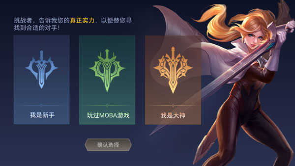 4、根据自身选择是MOBA新手还是大神,然后系统会进行合理分配;