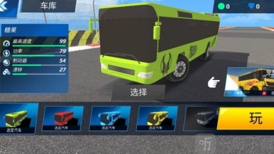 3.用方向盘、油门、刹车和换档来控制车,停好站点,开关车门让乘客上下车。