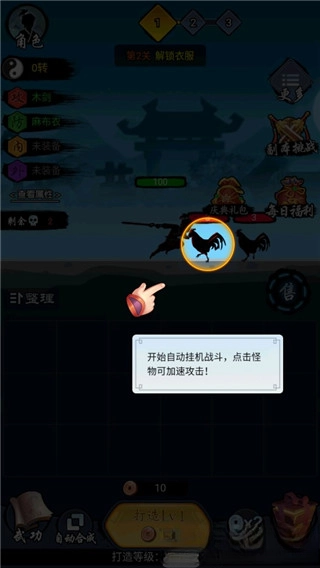 3.开始自动挂机战斗,点击怪物可加速攻击。
