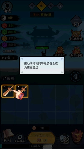 7.首先先买两把剑,然后拖动两把相同等级装备合成为更高等级。