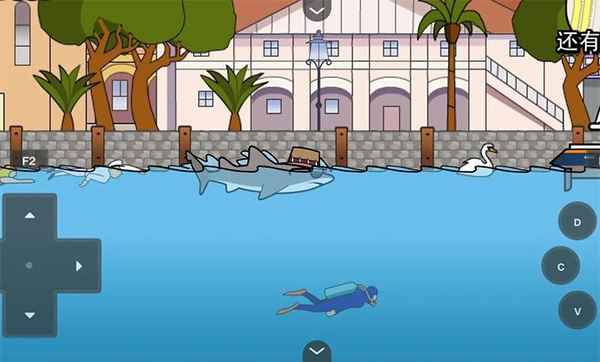 2、来到游戏内我们先来熟悉一下基本的操控,我们向下游,然后突然往上就可以跳很高。