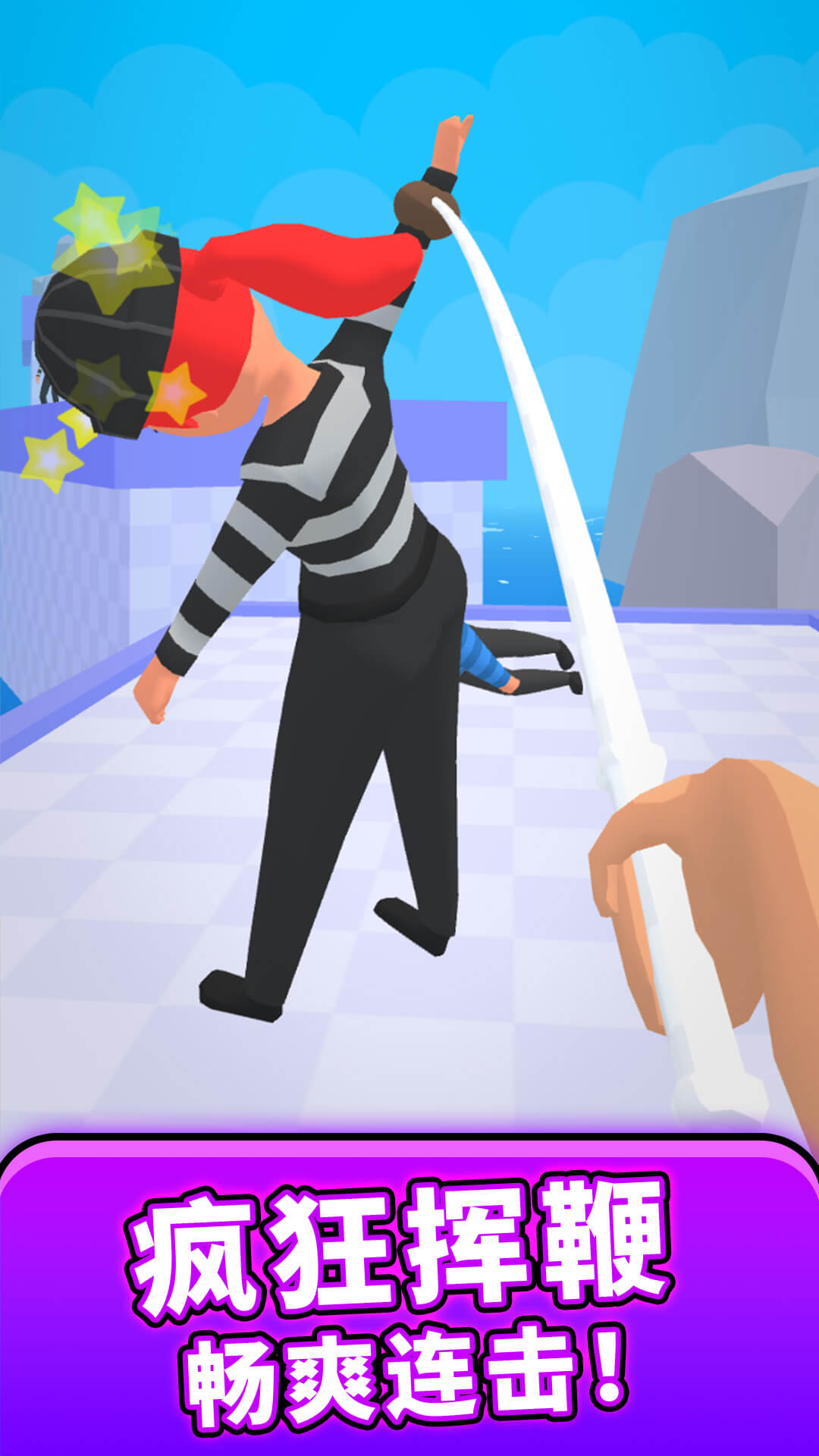 1. 通过滑动屏幕或按键来控制鞭子,准确击中敌人。长按时可以蓄力并缠绕目标,松开后则能将敌人甩出去;