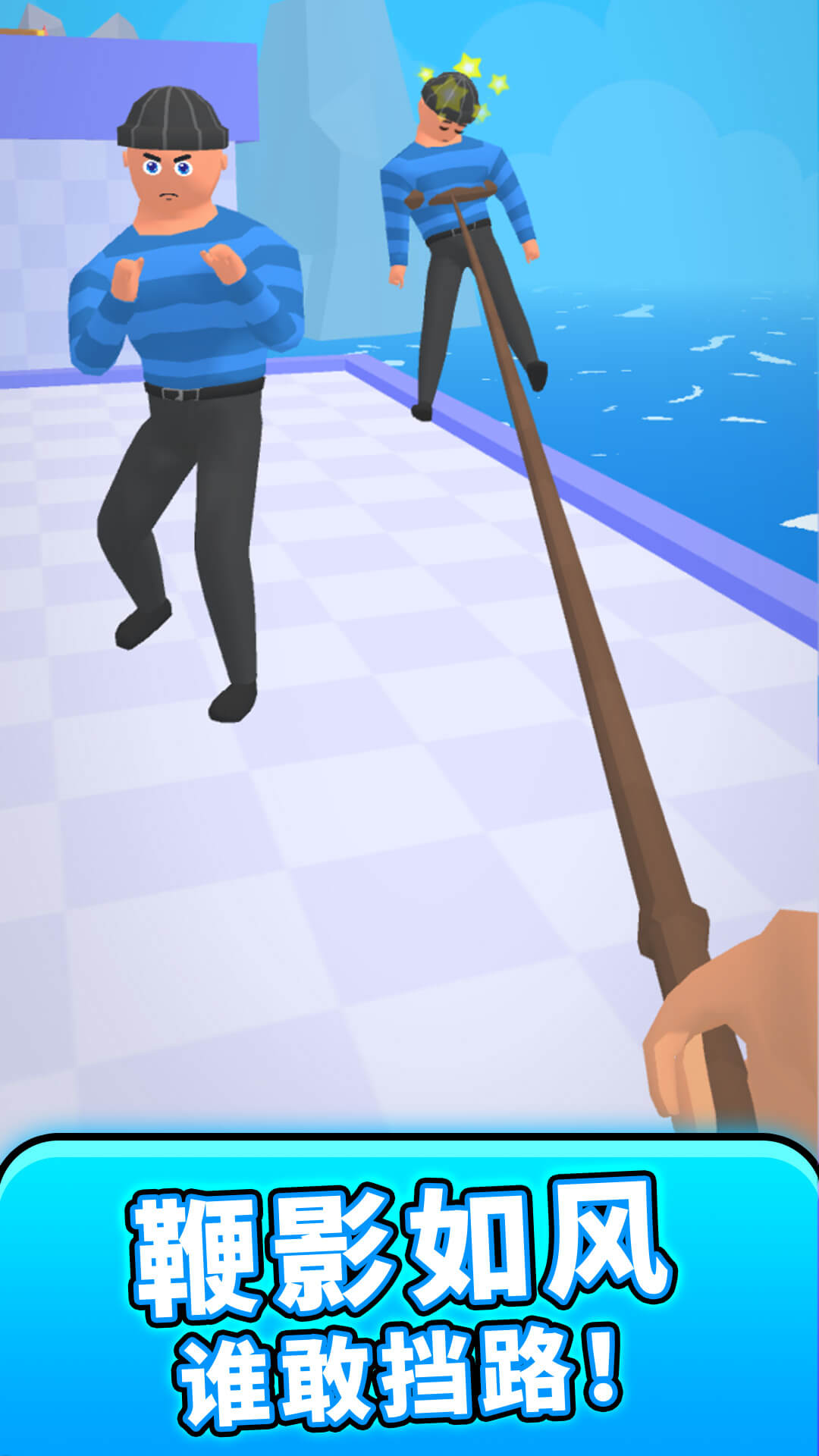 《魔法小兵大战》是一款充满乐趣的动作闯关游戏。游戏采用了生动的3D卡通风格,并以第一人称视角带领玩家进入冒险之旅。在游戏中,你的主要武器是一条长长的鞭子,你可以利用它对前进道路上遇到的敌人发起各种创意攻击。比如,你可以猛地一甩鞭子将敌人缠住,再用力一挥将其抛入海中。总之,通过运用这条鞭子的各种技巧,你能够以一种酷炫的方式击败对手,顺利通关。