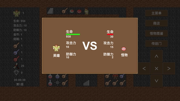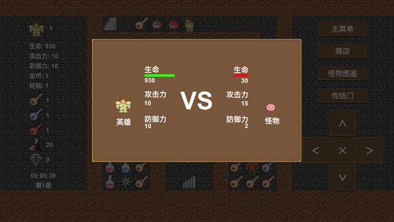 5. 通过上下左右方向键移动角色,攻击怪物只需按一下怪物所在的方向键即可,怪物身上会直接显示损失血量,更加方便。