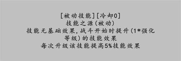 二、每次升级该技能提高5%技能效果,该属性全局永久存在,即后面提升的属性也可以吃到这个加成