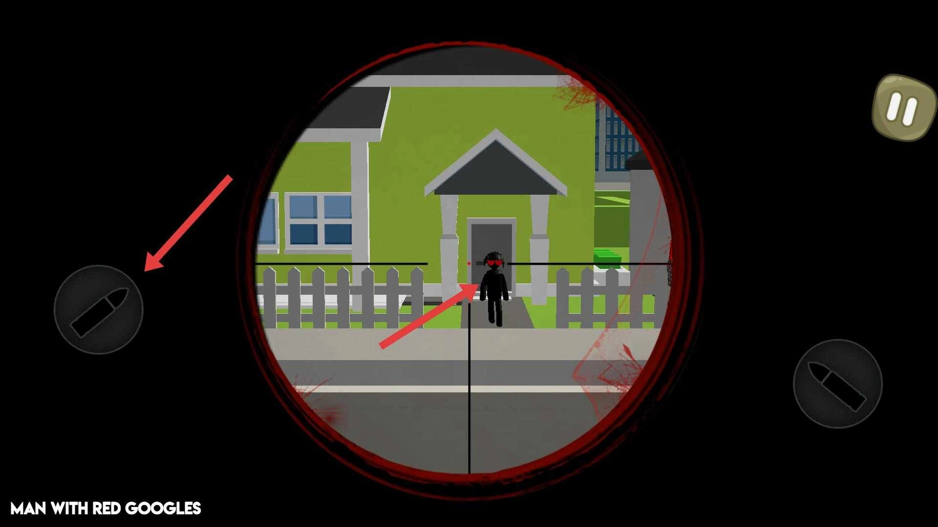 2、进入游戏后,通过狙击镜瞄准目标,看到戴红色护目镜的人物,点击左侧子弹按钮,可发射子弹进行射击。