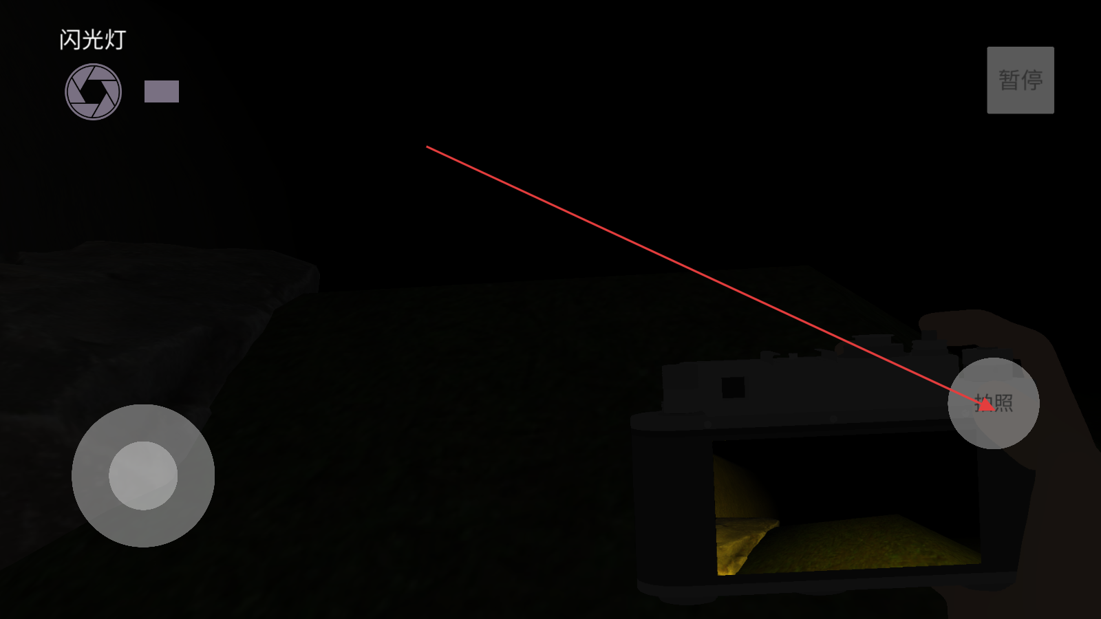 3、深入黑暗区域,注意【闪光灯】状态,可以点击【拍照】用闪光灯探环境。