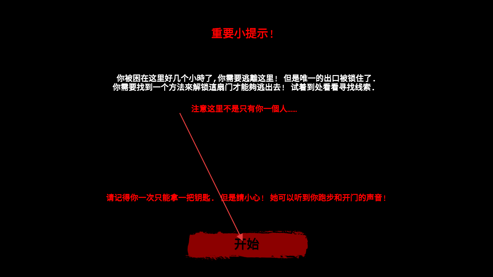 2、阅读【重要小提示】,牢记规则,点击【开始】搜寻逃生线索。