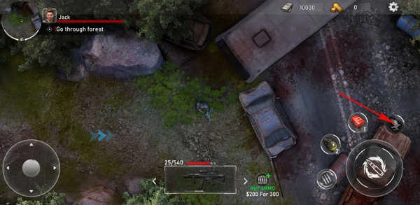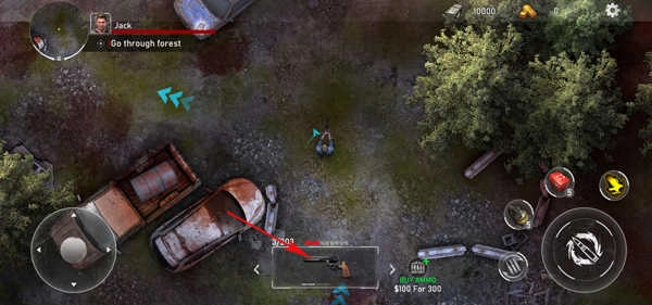 1、在本站安装好亡灵丧尸杀手汉化版后,打开进入游戏,左下角按钮可以控制角色自由移动。