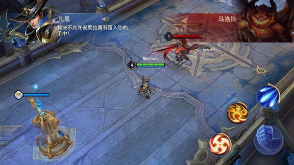 3、玩家仅需专注于眼前敌人的动向,透过左下方移动轮盘进行走位,瞄准对手后点击右下角的技能键释放招式即可。