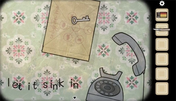 1. 踏入房间,首先看到的是桌上的电话和信封。柜子中锁着一个玻璃罐子,其上方摆放着一个花盆。镜子里映射出一个透着诡异气息的黑影。