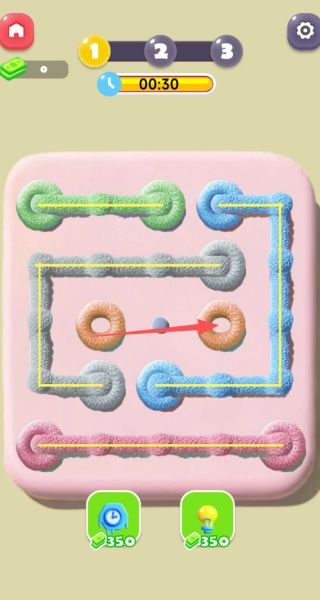 3、面对限时的绳结类关卡,需迅速留意绳结的布局以及小球的移动方向,提前规划好小球的行进路线,力求在规定时间内,让小球顺利穿过绳结区域。