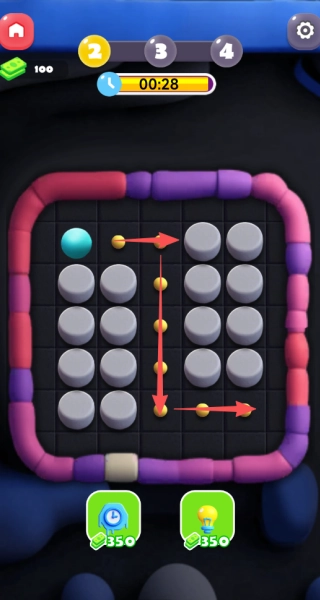 4、在限时的小球移动关卡中,依据箭头所指示的小球移动方向,提前对小球的行进路线做出预判,避开障碍,并且留意收集途中的金币。