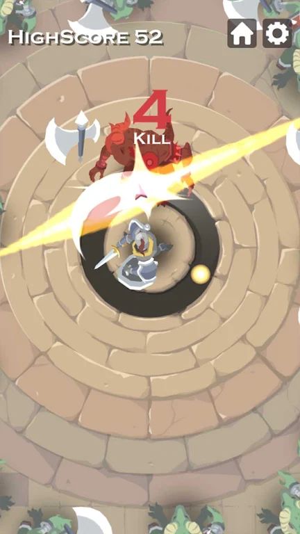 2、当怪物进入攻击范围时,你只需点击屏幕,就能发动旋转攻击,欣赏到华丽的攻击特效。