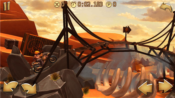 这款游戏将Trials系列久负盛名的写实物理机制游戏内容引入到移动设备上。你可以精准操控摩托车,通过前后移动重心,完成更精彩的着陆、独轮骑行以及特技动作。