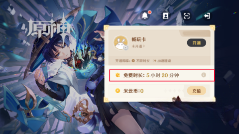 1、初次登录云原神,能直接获取5小时的免费时长,每天登录还可领取15分钟。