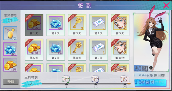 在新手期,依照引导来解锁主界面中的“福利”与“活动”面板,所有奖励都会在此处集中呈现,以防遗漏。建议各位每天上线后,首先浏览这两个面板,查看是否存在未领取的奖励。