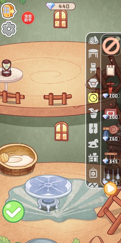 2、一开始空间空荡荡的,得收集更多有意思的家具,通过持续消除来解锁全新家具。