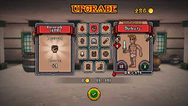 9、金币能够购买自己的生命值、提升武器等级以及解锁新角色等。