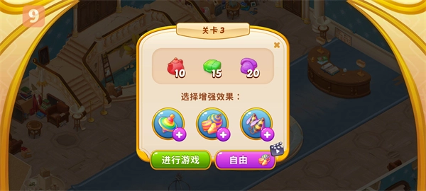 3、钥匙作为游戏里的关键资源,玩家能够通过完成消除关卡来获取。在每次进入关卡之前,玩家可以自行决定是否启用增强效果,也可以切换到“自由模式”,去体验更为轻松的游戏玩法。