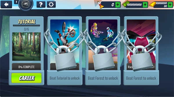 3、首次进入游戏,需先完成【TUTORIAL】教程关卡,方可解锁后续关卡。点击【CAREER】进入教程关卡开启挑战。