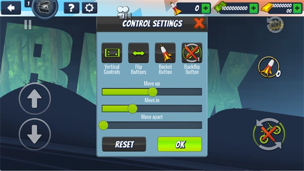 1. 游戏开始前,你能够依据个人操作习惯对控制参数进行调整,像垂直控制、翻转按钮、火箭按钮等都在可调整范围内,以此保证游戏操作体验的舒适度。调整结束后,点击【OK】确认设置。