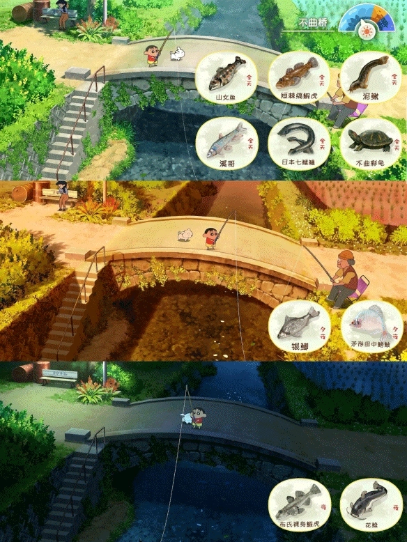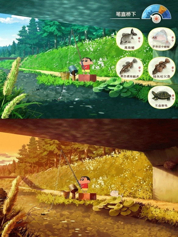 此游戏主要依靠剧情推进,玩家将带领小白在秋田的自然乡野与神秘的煤炭镇之间穿梭。在不同场景中,会解锁各种各样的互动玩法,像是钓鱼、抓蝴蝶、采山菜、栽培蔬菜,还能用小新那奇特的动作与NPC互动,每一处细节都充满了小新动画世界的原汁原味。