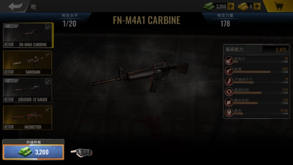 6、接着点击左下角的【升级所有】选项,使用现金对武器进行升级,以此增强武器的威力以及自身的生存能力。