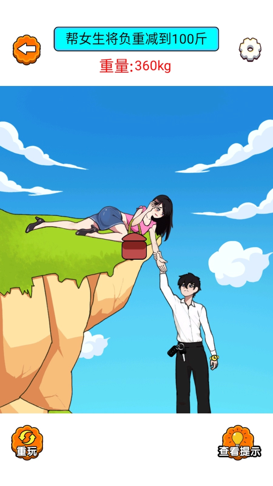 一个女生挂在悬崖拉人,随时掉落悬崖,您需要丢弃身上的重物才能生存
