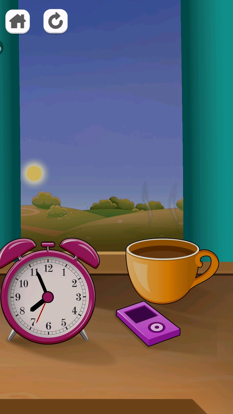 3、游戏界面显示三个道具,可以调整时钟,可以播放MP3,可以喝咖啡