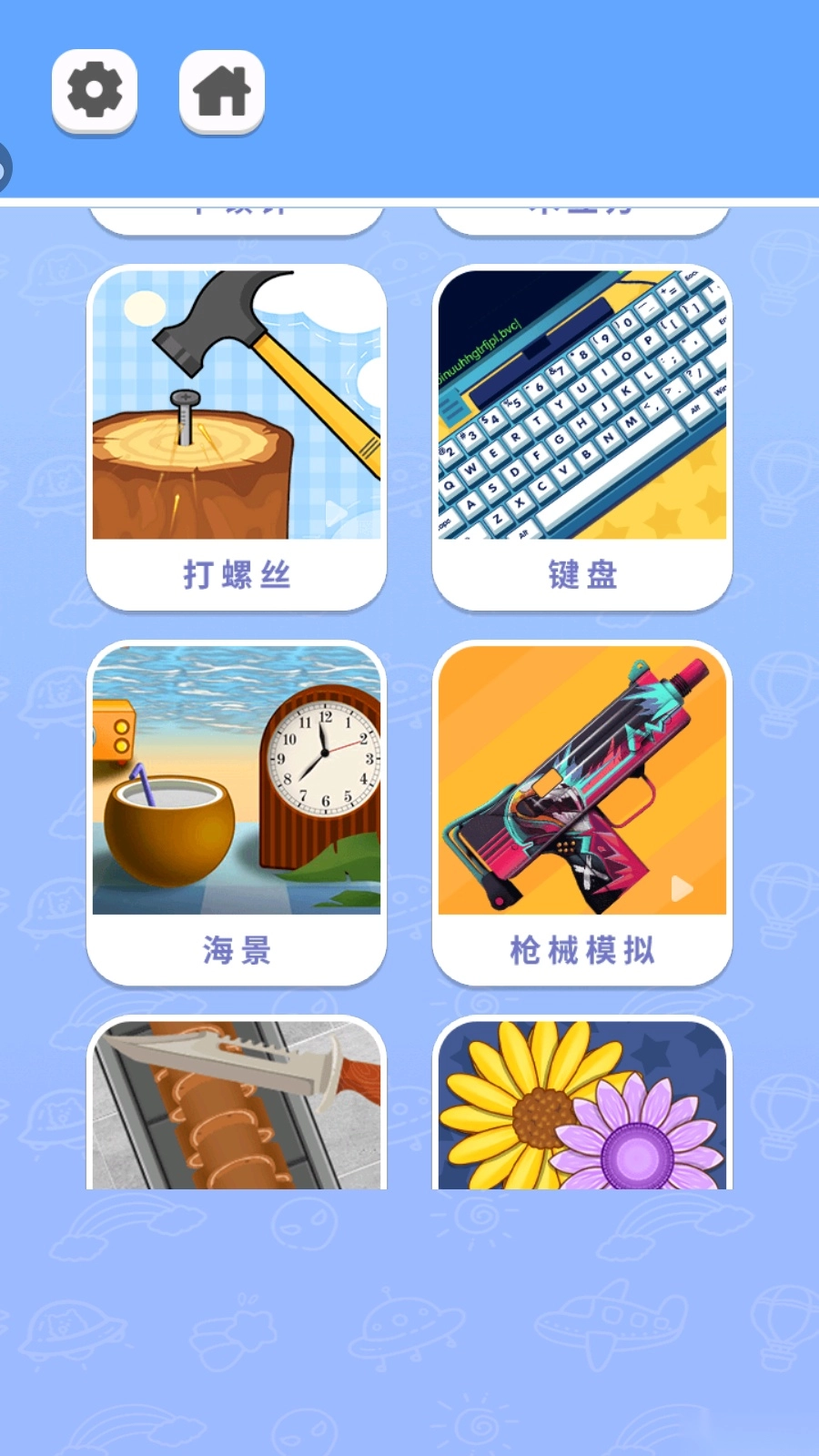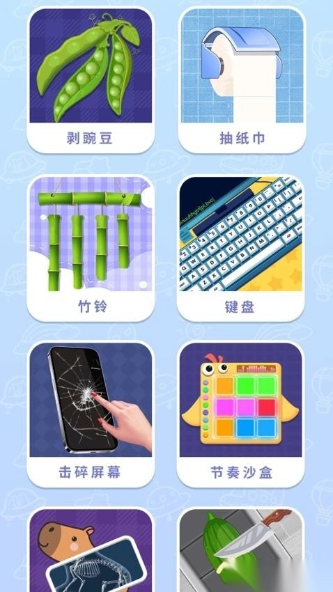 提供几十种解压的小游戏,可以选择汉诺塔、键盘、开关、击碎屏幕等游戏