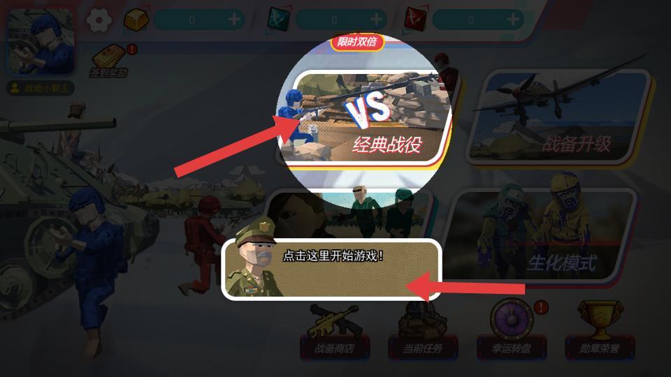 1打开游戏后,首先映入眼帘的是包含经典战役等玩法选项的初始界面,界面上还标注着开始游戏的引导提示;点击该提示后,便会跳转至可供挑选地图的界面。