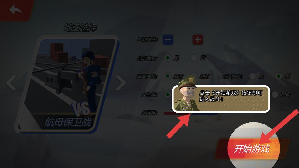 2在地图挑选的界面中,可以选定航母保卫战之类的地图,设定获胜要求等,点击启动游戏后,就会进入到装备挑选的界面。