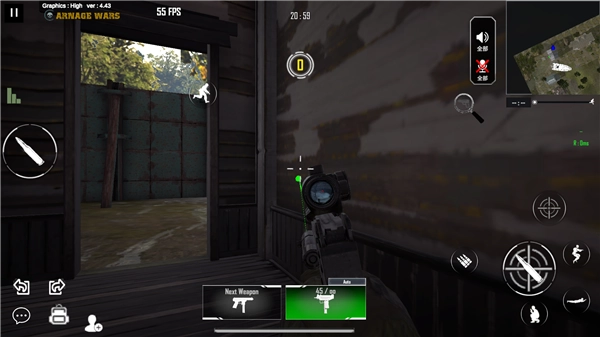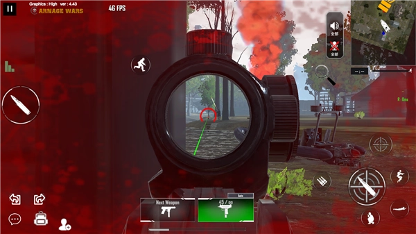 8、左侧负责控制移动,右侧用于瞄准射击,这和大多数FPS游戏的操作逻辑一致。