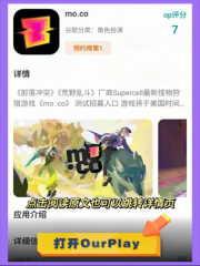 现在可以在OurPlay加速器里预约该游戏的测试资格,大家可点击下方的【阅读原文】下载OurPlay加速器,然后在加速器内搜索“moco”进入游戏详情页面。