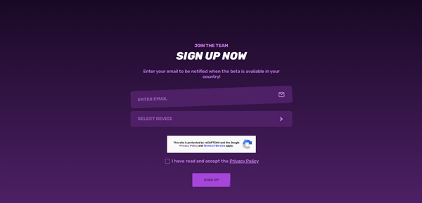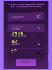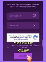请点击页面中央那个紫色的【SIGN UP FOR BETA】按钮来完成测试注册操作