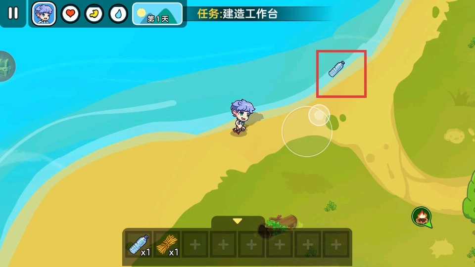 2在游戏场景里收集水瓶之类的资源,好为接下来的游戏任务提前做准备。
