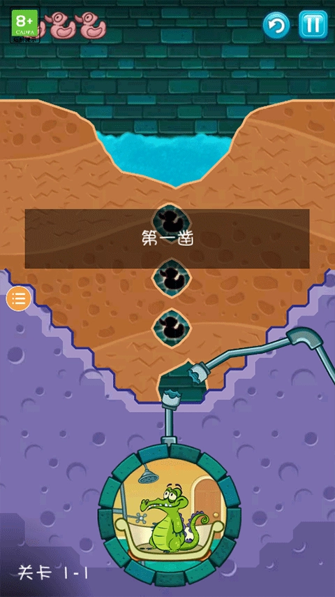 鳄鱼小顽皮爱洗澡的玩法很简单,玩家需要把干净的水引到小鳄鱼的房间,让它洗澡,在这个过程中你需要收集小鸭子,并且避开危险物品,比如水藻和毒泥。操作简单,但是很考察玩家的大脑反应能力。