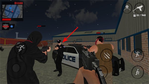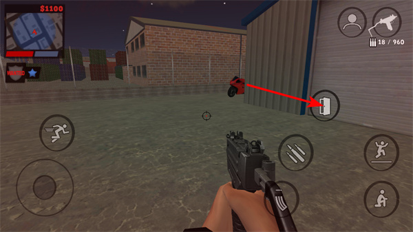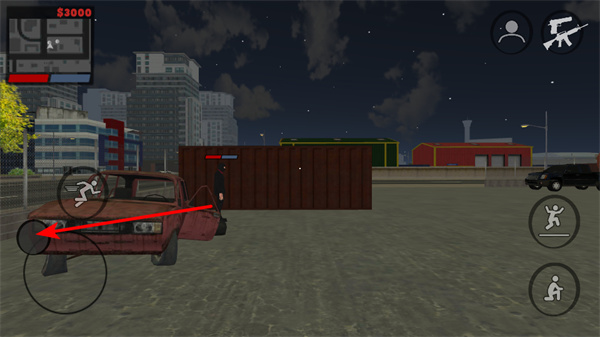 1、借助左侧的虚拟摇杆来控制角色移动,在城市场景里展开探索,搜寻武器与任务目标,这是角色行动的基础操作。