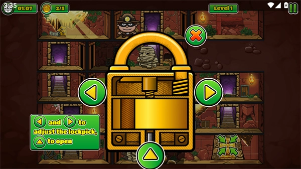 神偷鲍勃5是一款趣味十足的潜行解谜游戏,完美继承了系列核心玩法与独特风格。你将再次扮演身手敏捷的神偷鲍勃,潜入机关重重、守卫森严的古老遗迹,盗取传说中的宝藏。游戏要求你巧妙避开巡逻敌人、善用阴影隐藏,并在敌人察觉前迅速行动。关卡融合了机关与路线规划,需要你仔细观察、利用道具,制定周密的潜行策略。每一关都有明确目标,成功盗宝并安全撤离,即可解锁后续的精彩挑战。