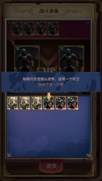 3、合理安排卡牌站位,将具有高生存能力的近战单位部署于前排承受伤害,远程输出则放在后方安全区域。