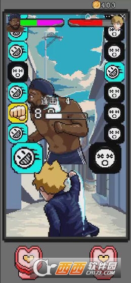 地下拳皇格斗赛是一款复古像素风格的休闲街机游戏,操作简单易上手,玩家只需点击对应按键就能发起攻击或进行躲避,以此挑战各式各样的Boss!连击次数越多,最终得分就越高!故事围绕一名平凡的学生展开,在玩家的持续努力下,他将一步步击败校园里的恶霸势力!打倒那些流氓混混,守护学校的和平与安宁。
