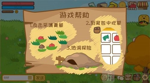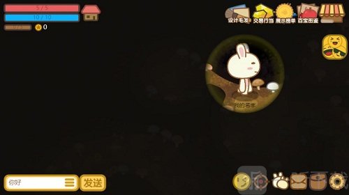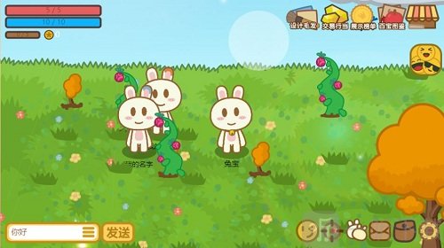 3. 你还能在右下角和其他好友交流对话,上方可以查看背包以及兔子的状态。