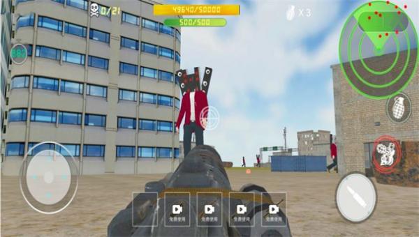 玩家可在游玩过程中通过完成任务逐步开启新的游戏区域,从废弃的工业场地到荒凉的戈壁,甚至是茂密的林地都能化作战斗舞台,既能遇见充满趣味的监控造型角色,也能遭遇入侵而来的马桶造型敌人。
